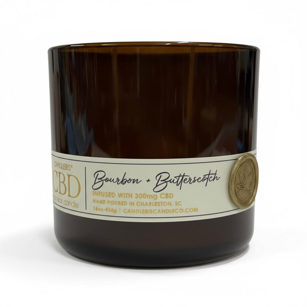 Crafted in a dark amber glass vessel with a black bamboo lid, this 16 oz candle features two wicks for a clean, even burn and is infused with 300mg of pure CBD to enhance relaxation and balance. Simple, natural, and effortlessly refined.