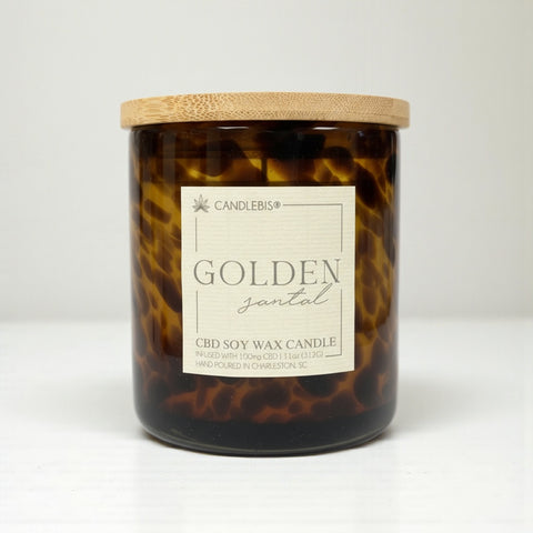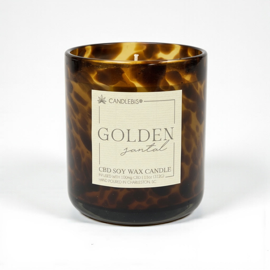 Wrap your senses in the warm, earthy elegance of Golden Santal, a fragrance that layers spice, wood, and musk into a sophisticated blend. Poured into our 11 oz hand-blown artisan glass vessel with an estate paper label, each candle is meticulously crafted with smooth contours that enhance the glow of candlelight. Topped with a bamboo lid and infused with 100 mg of CBD, it creates an inviting atmosphere that feels both grounding and refined.