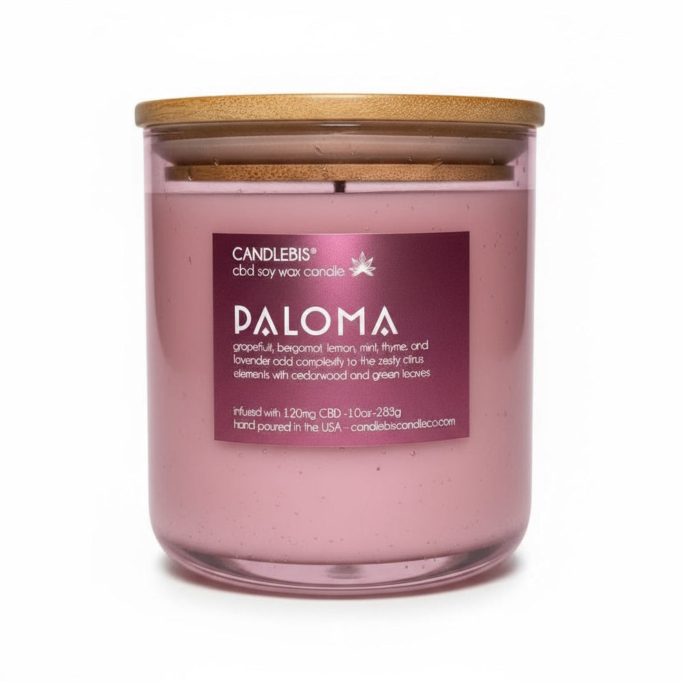 Say hello to pure relaxation with our CBD-infused Paloma candle, your new favorite way to unwind! Inspired by the refreshing cocktail, this fragrance opens with vibrant top notes of grapefruit, bergamot, and lemon, delivering a sparkling citrus burst. Herbal middle notes of mint, thyme, and lavender lend a soothing complexity, while grounding base notes of cedarwood and green leaves create a sophisticated, tranquil finish.