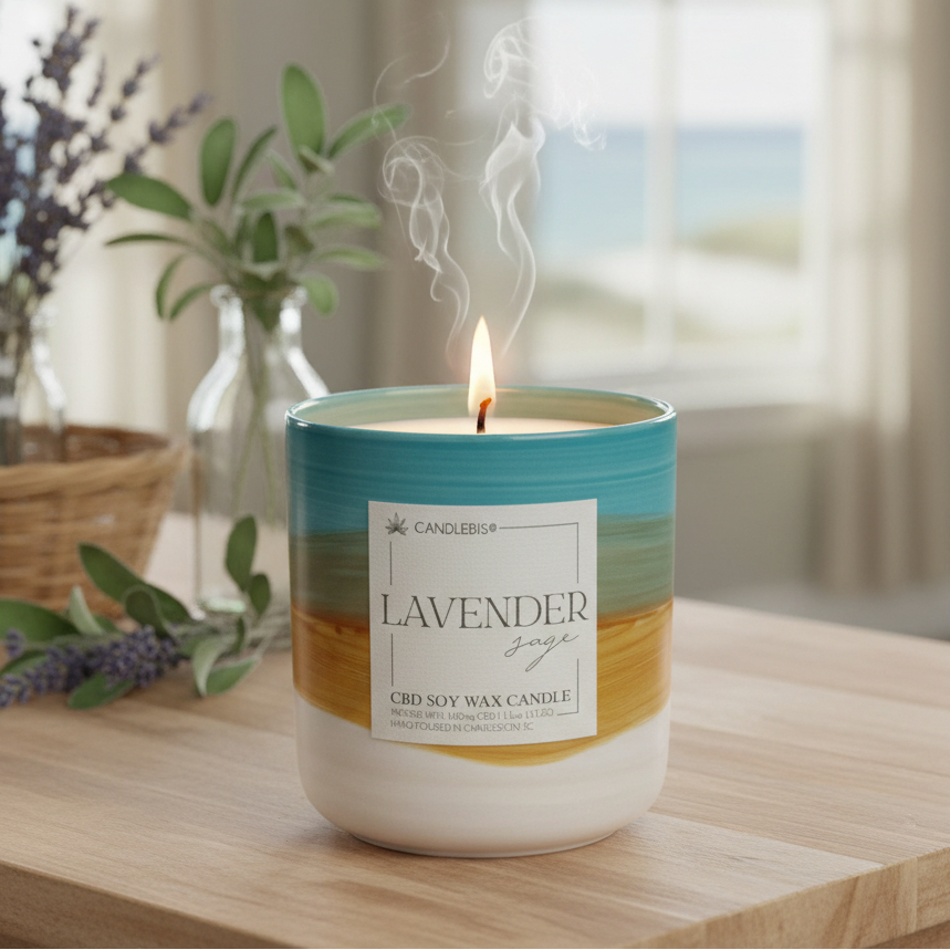 Unwind with the calming essence of Lavender Sage, a fragrance that blends soothing florals with grounding herbs and woods. Poured into our 11 oz bone china vessel, each candle is meticulously crafted with smooth contours and a radiant finish that enhances the glow of candlelight. Finished with a bamboo lid and infused with 100 mg of CBD, this candle transforms your space into a sanctuary of peace and refined simplicity.
