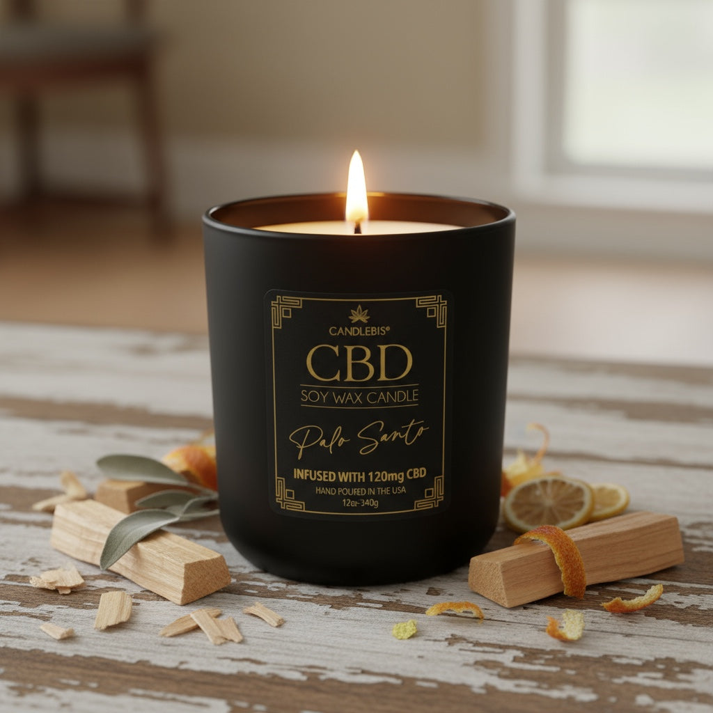 Candlebis 12oz Palo Santo CBD Candle with 120mg of CBD
