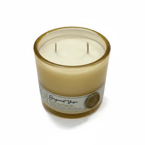 Brighten your space with the Opus 16 oz Bergamot Yuzu Candle, infused with 300mg of pure CBD and featuring two wicks for a clean, even burn. This vibrant citrus fragrance opens with yuzu, grapefruit, lemony citron, and mandarin, layered with hints of peach, orange, and delicate cyclamen for an irresistible burst of brightness. The finish is rounded with vanilla, bergamot, and citrusy bright musk, creating a fresh, uplifting scent experience. Infused with natural essential oils of grapefruit, orange, and lemon, this candle delivers a wellness-forward aromatherapy experience.